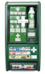 Den midtre seksjonen består av et ekstra rom for lagring av påfyllings- og supplerende førstehjelpsprodukter. Stasjonen har tydelige piktogrammer som viser riktig førstehjelpsinstruksjon. Eget felt for nødnummer