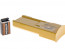 Det medfølgende 9 volt lithiumbatteriet passer i et rom i hovedbatteriet og sørger for enhetens daglige, ukentlig og månedlige egenkontroll. Disse testene tapper altså ikke hovedbatteriet.