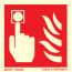 Etterlysende skilt. Symbolskilt for merking av alarmknapp som manuell brannmelder til brannvarslingsanlegg.